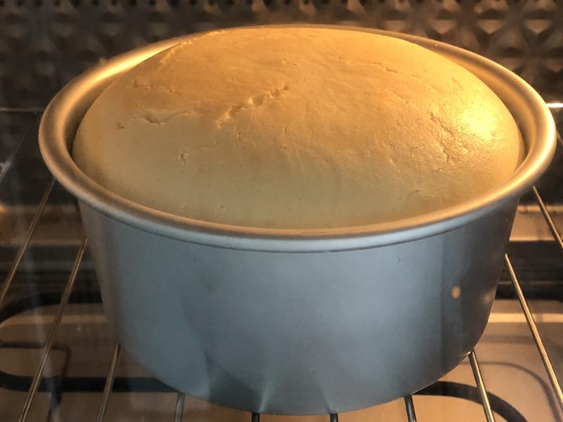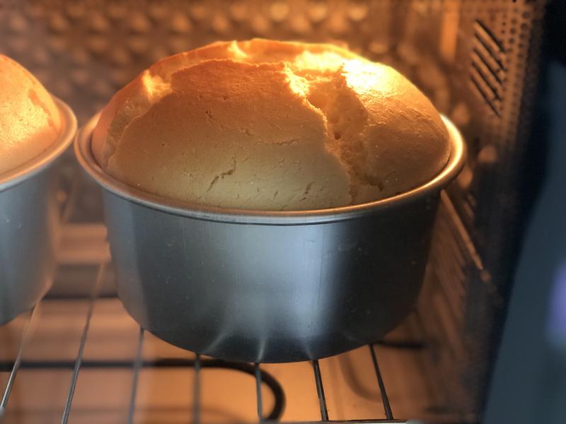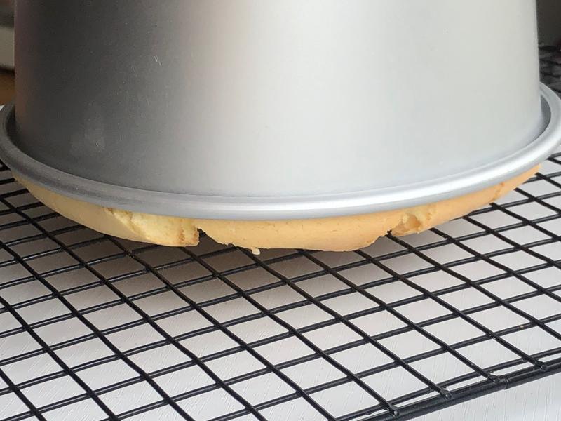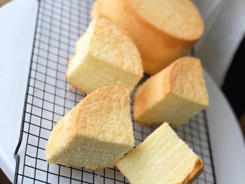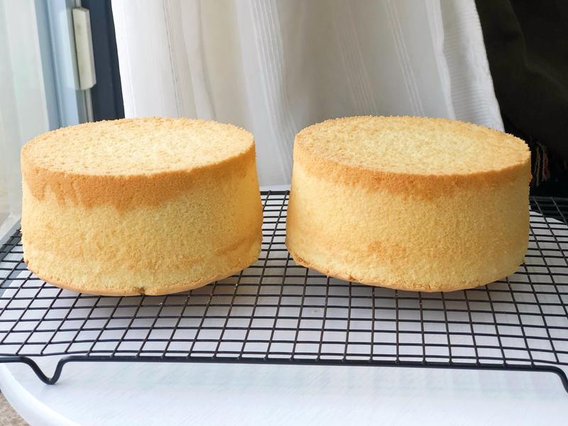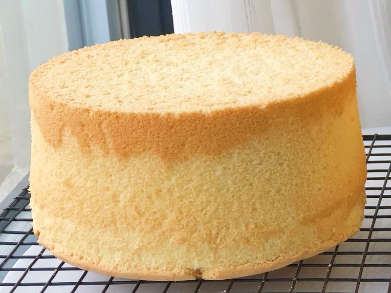8、一定要倒扣完全放凉再脱模,不然戚风会收腰。