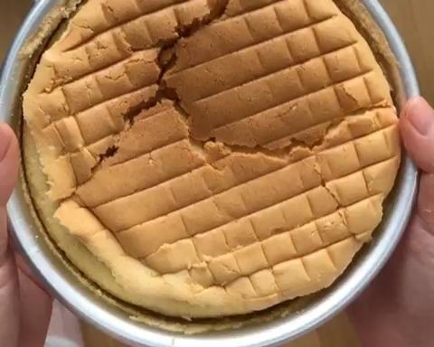 拍脱模视频特地挑了个开裂严重的戚风告诉大家戚风开裂真的没问题‼️首先用手按压蛋糕边缘一整圈使蛋糕体与模具壁脱离。(请忽略我的小胖手)